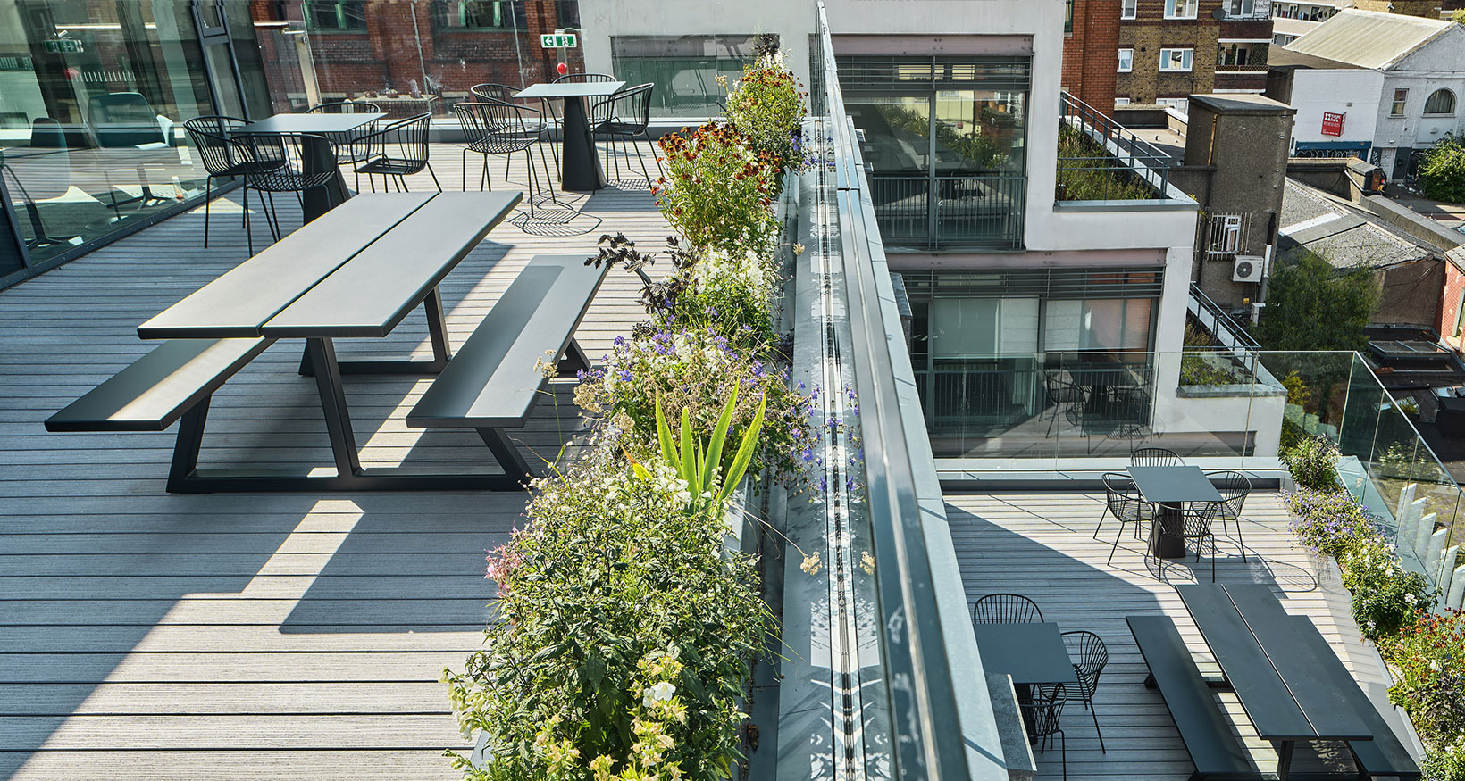 The penthouse floor delivers the top floor advantages with a generous wrap-around landscaped furnished terrace. A perfect mix of public and private space ensures maximum productivity with 30 desks, 1 collaboration area, 3 break out areas and 4 phone booths.